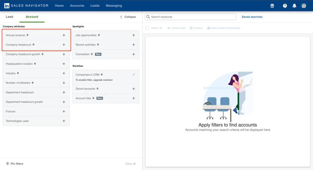 Sales Navigator is an excellent tool for implementing this strategy because it allows you to filter and track companies based on precise attributes, making it much easier to focus on high-value accounts.