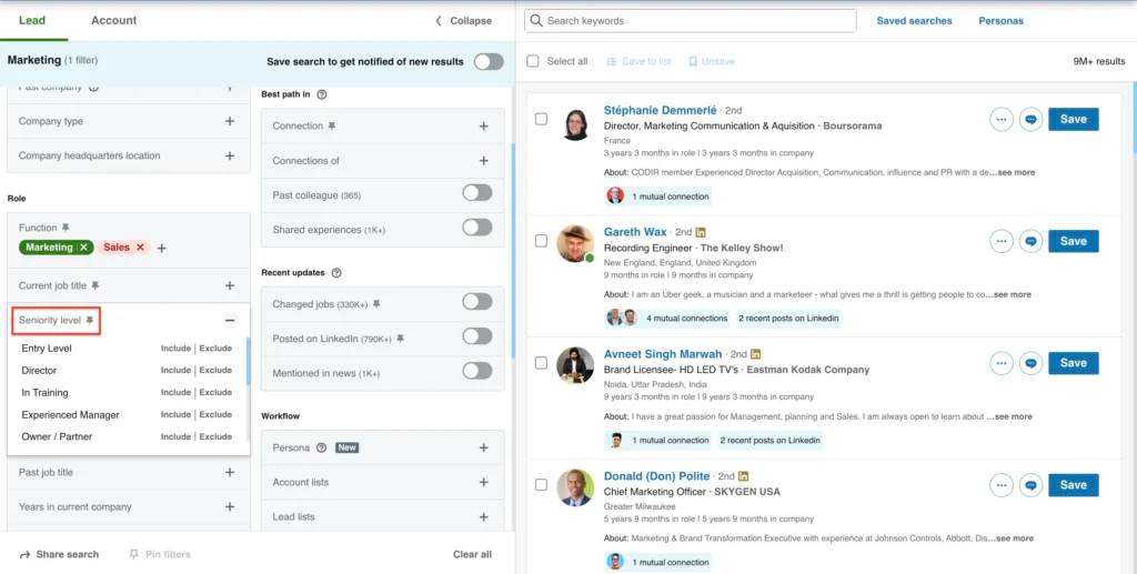 Unlike standard LinkedIn search, which requires you to manually infer seniority based on job titles, Sales Navigator provides a structured way to segment decision-makers from junior-level employees.