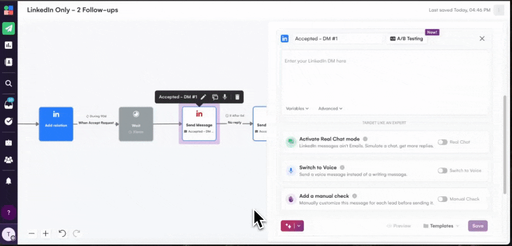 Apply variables and customization across your entire outreach sequence.