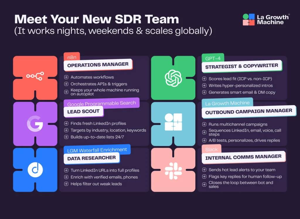 Move beyond the traditional image of SDRs manually working through prospect lists. Today’s SDR team resembles an orchestrated, AI-powered system operating continuously.