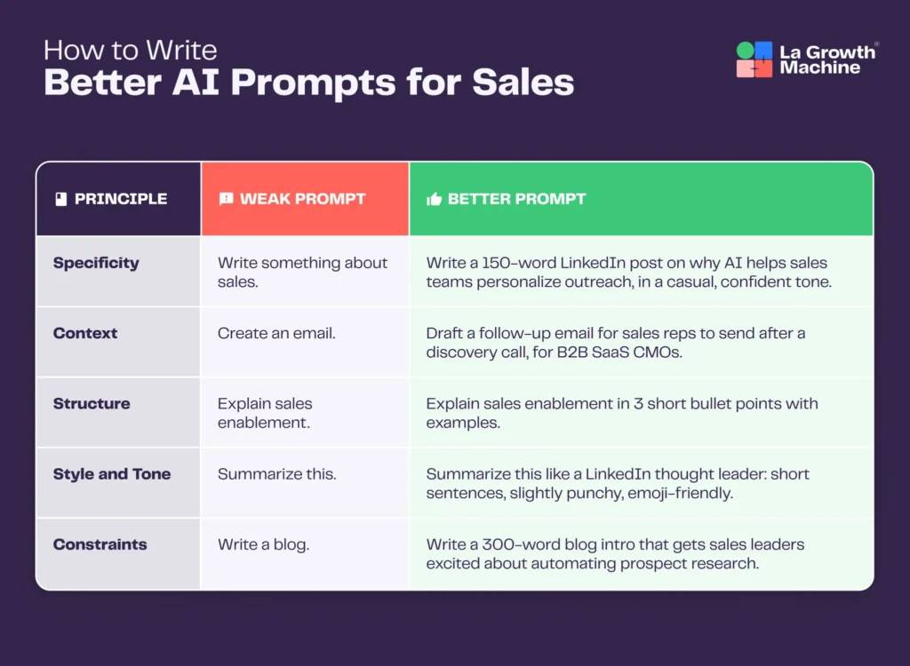 It’s about giving AI enough context and constraints so it can reason like you would. Not just filling in blanks, but thinking strategically about your market, your goals, and your prospects’ pain points.