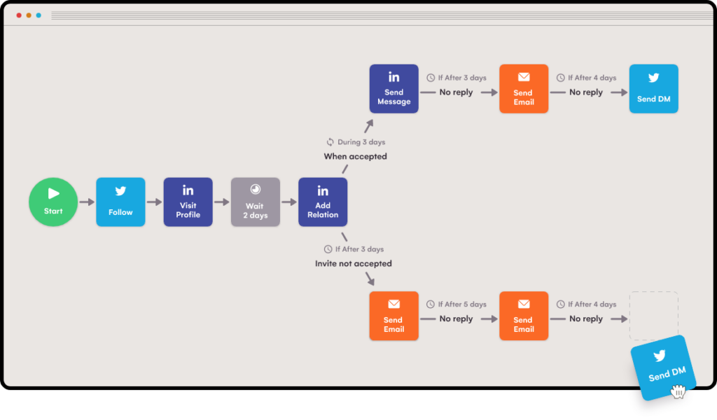 – Build multi-channel sequences combining LinkedIn, email, and phone for better reach