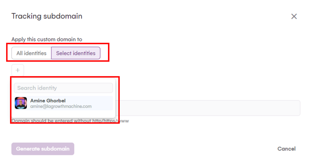 - Step 1: Specify whether you want this domain for All identities or only one.