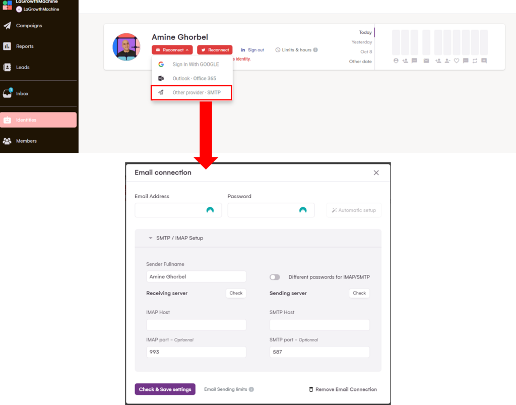 The good thing about La Growth Machine is that it allows you to configure SPF and DKIM, here’s how: