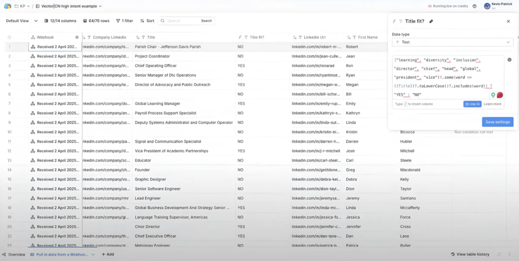 - This ensures processing only for prospects that match your ICP and desired job titles