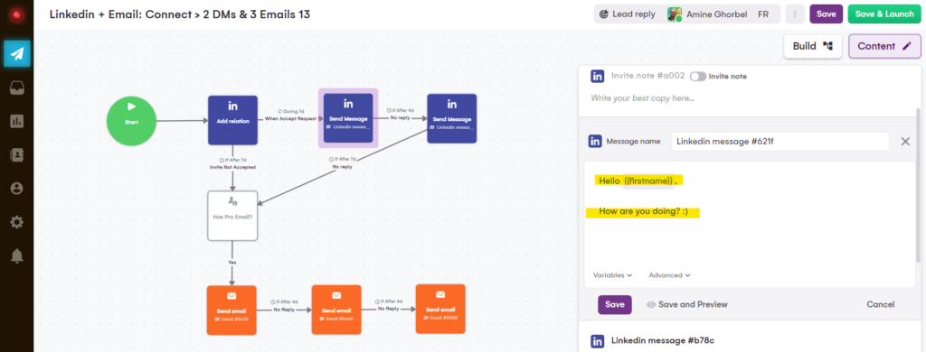 Eintreten: LaGrowthMachine! Unsere Software ermöglicht es Ihnen, potenzielle Kunden auf mehreren Kanälen gleichzeitig zu kontaktieren (LinkedIn Nachricht, E-Mail, Twitter) und Ihre Nachrichten im Voraus einzustellen, um ein effizientes und sehr organisches Ergebnis zu erzielen.