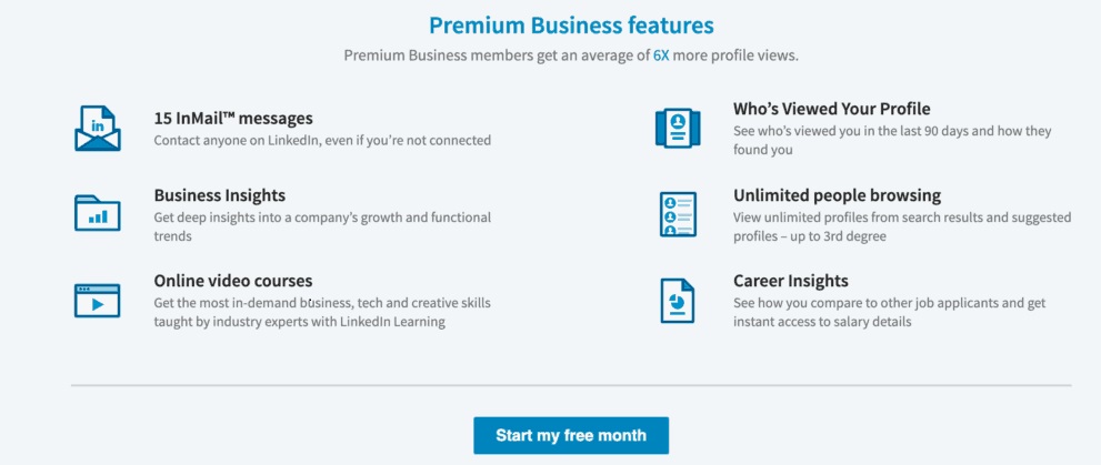 - Wenn Sie auf Jobsuche sind oder sich beruflich weiterentwickeln wollen und etwas Geld investieren können, kann das LinkedIn Premium Career Abonnement die richtige Lösung sein. Die angebotenen Funktionen sind in der Tat sehr nützlich für Kandidaten, einschließlich des vorrangigen Zugangs zu Stellenangeboten und der Möglichkeit, Personalverantwortliche direkt zu kontaktieren. Ein klarer Vorteil gegenüber Kandidaten, die LinkedIn Basic nutzen.