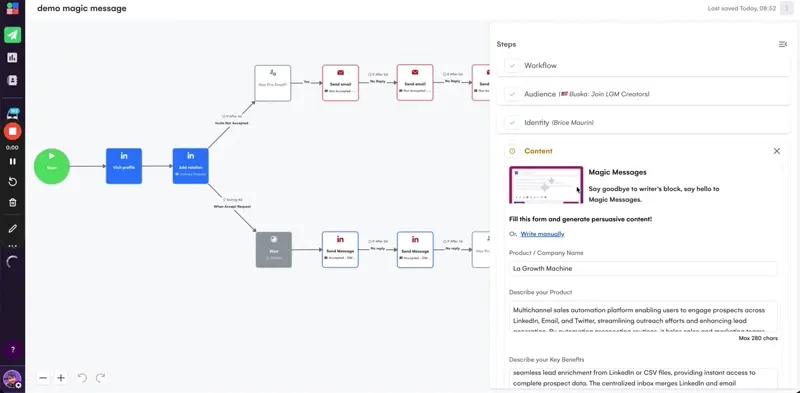 That’s where LaGrowthMachine comes in! Our tool allows you to build a strong multichannel sequence for your sales automation process.