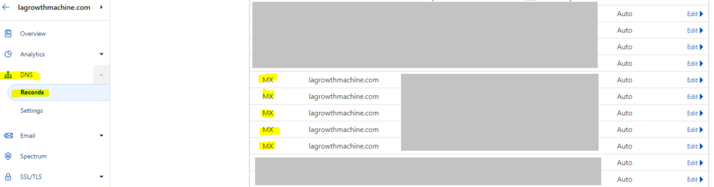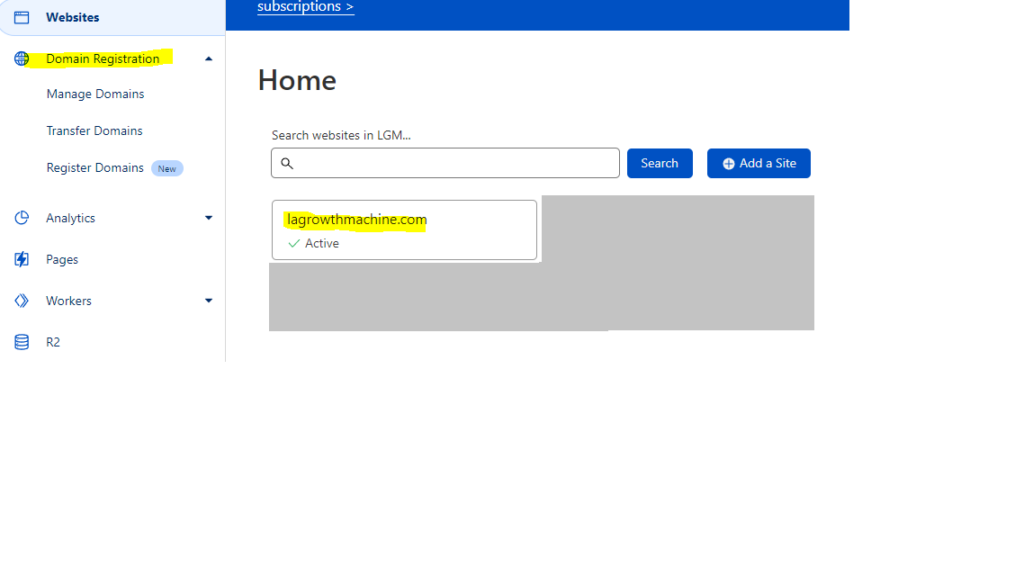A continuación, haga clic en el nombre de dominio que desee configurar (en este caso: lagrowthmachine.com).