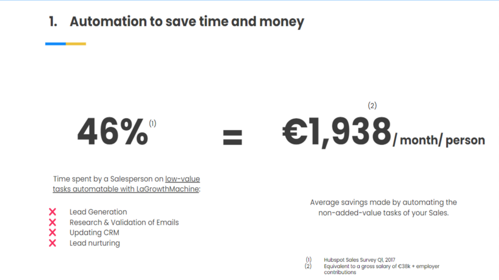 En LaGrowthMachine recomendamos que, además de contratar a las personas adecuadas, contrate las herramientas de sales automation adecuadas. Se lo mostraré en partes posteriores de esta guía 😉