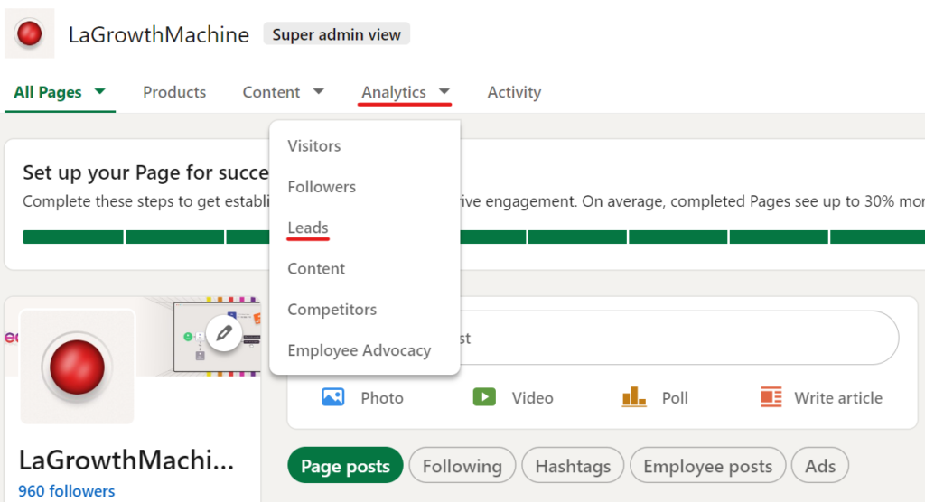 Es muy importante tener en cuenta que con el fin de crear y editar un formulario de Lead Gen en LinkedIn, necesitas acceso de super administrador a tu página de empresa LinkedIn.