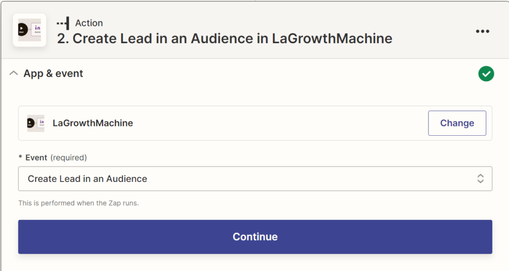 Ahora es cuando la cosa se pone interesante. LaGrowthMachine tiene muchas integraciones nativas, la principal de ellas es Zapier. Simplemente crearemos un Zap que extraiga leads de LinkedIn y los añada a su secuencia de LaGrowthMachine.