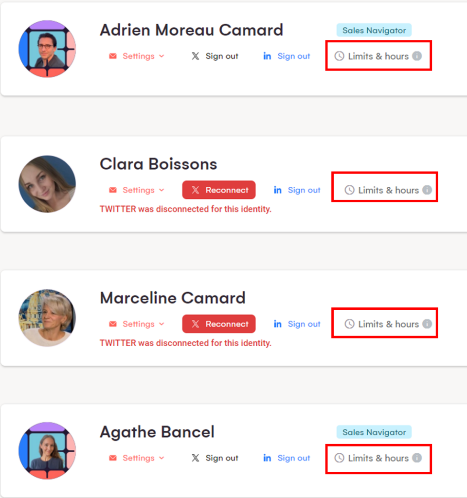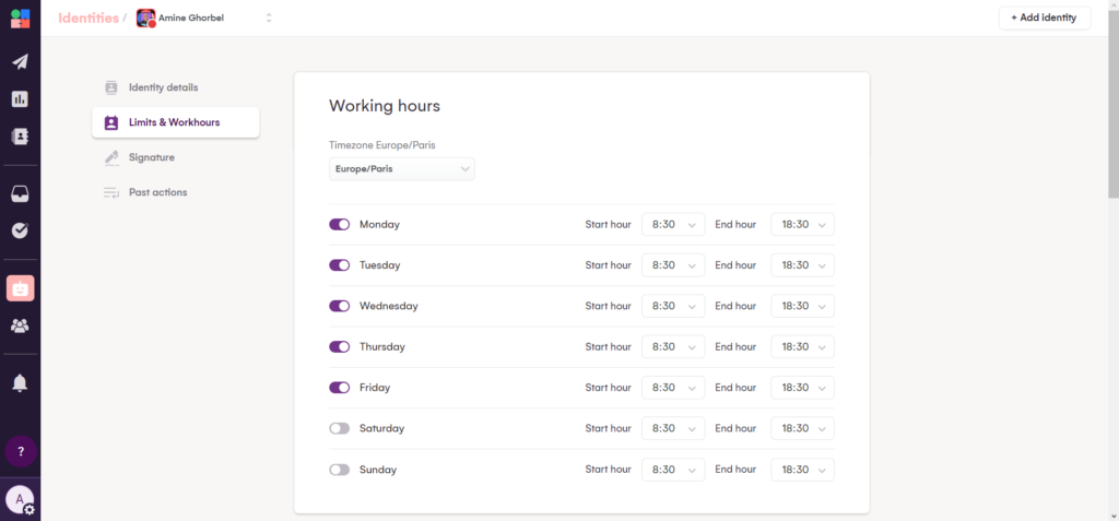 Y lo mejor de LGM es que puedes configurar esto para cada identidad. Cada una es independiente y puedes establecer diferentes Horas de Trabajo y Límites para cada una.