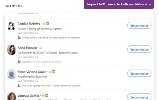 LaGrowthMachine te permite generar un promedio de 3.5 veces más leads, ahorrándote una increíble cantidad de tiempo en todos tus procesos. Al registrarse hoy, obtendrás una prueba gratuita de 14 días para probar nuestra herramienta!