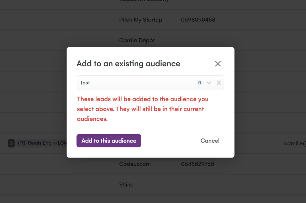 - Puede elegir si quiere añadir sus leads recién adquiridos a un público nuevo o a uno ya existente.