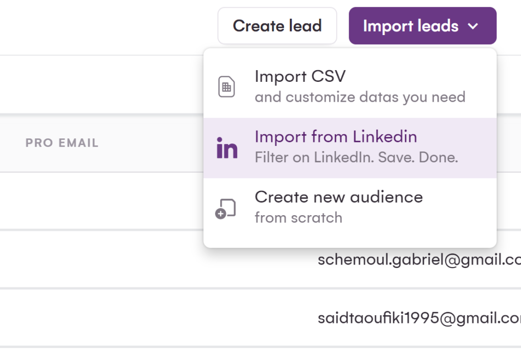 - Pulse “Import leads” y elija “Import from LinkedIn”