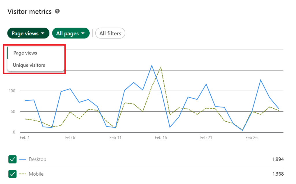 Evidentemente, cuanto mayor sea esta cifra, mejor rendimiento tendrás, porque significa que más usuarios únicos de LinkedIn han visto y visitado tu página.