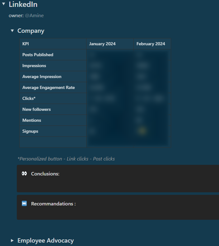 Al final, podrías utilizar una herramienta como Notion para presentar tus conclusiones y análisis. Deberías tener un aspecto similar al siguiente:
