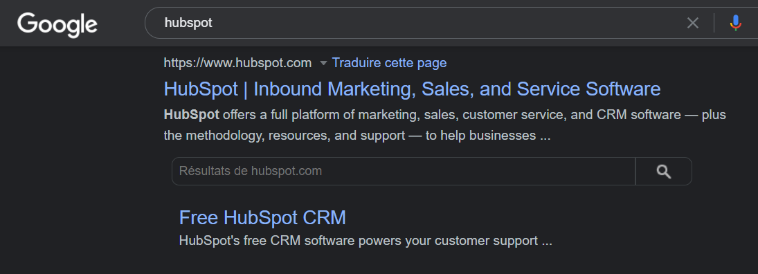 Es sencillo, sólo tienes que ir a Google y escribir la empresa con la que quieres contactar. Tomemos como ejemplo a Hubspot.