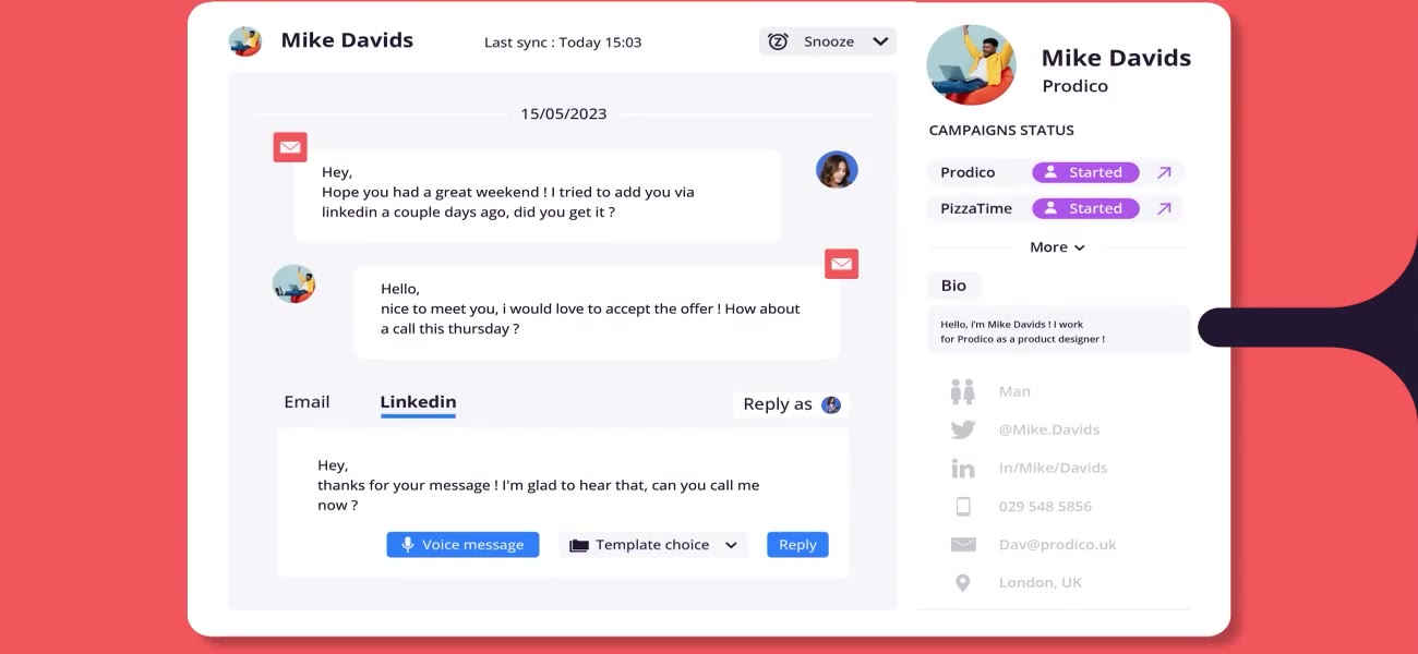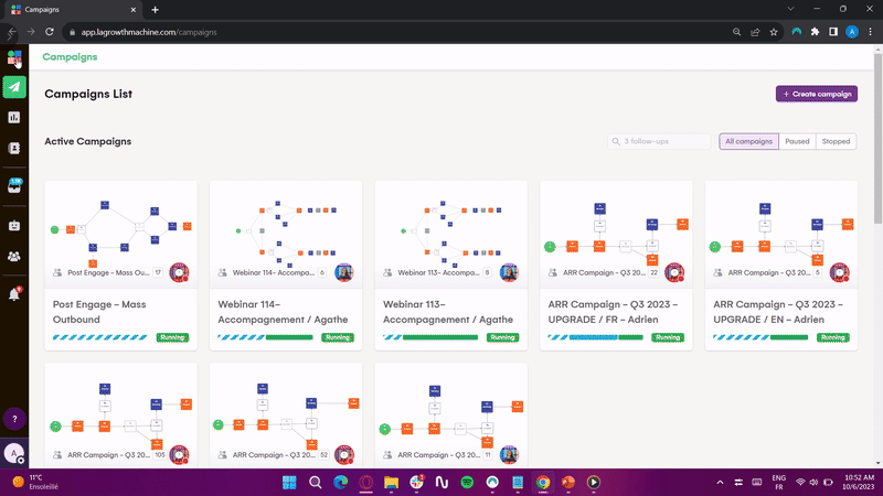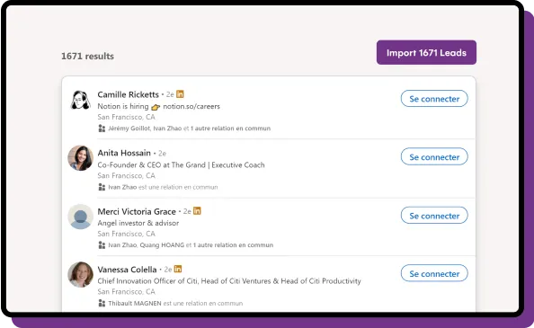¿Buscas mejorar la eficiencia de tu departamento de ventas? LaGrowthMachine te permite generar una media de 3,5 veces más leads, ahorrando una cantidad increíble de tiempo en todos tus procesos. ¡Al registrarte hoy, obtienes un período de prueba de 14 días sin coste para probar nuestra herramienta!