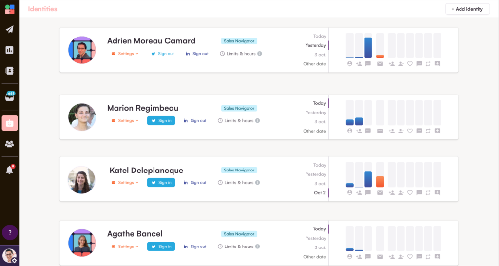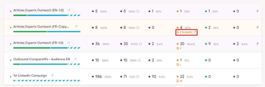 Puedes supervisar tu actividad dentro de cada una de tus campañas, a nivel de ficha de identidad, el número de acciones que han ejecutado, el número de leads generados y activados, etc.