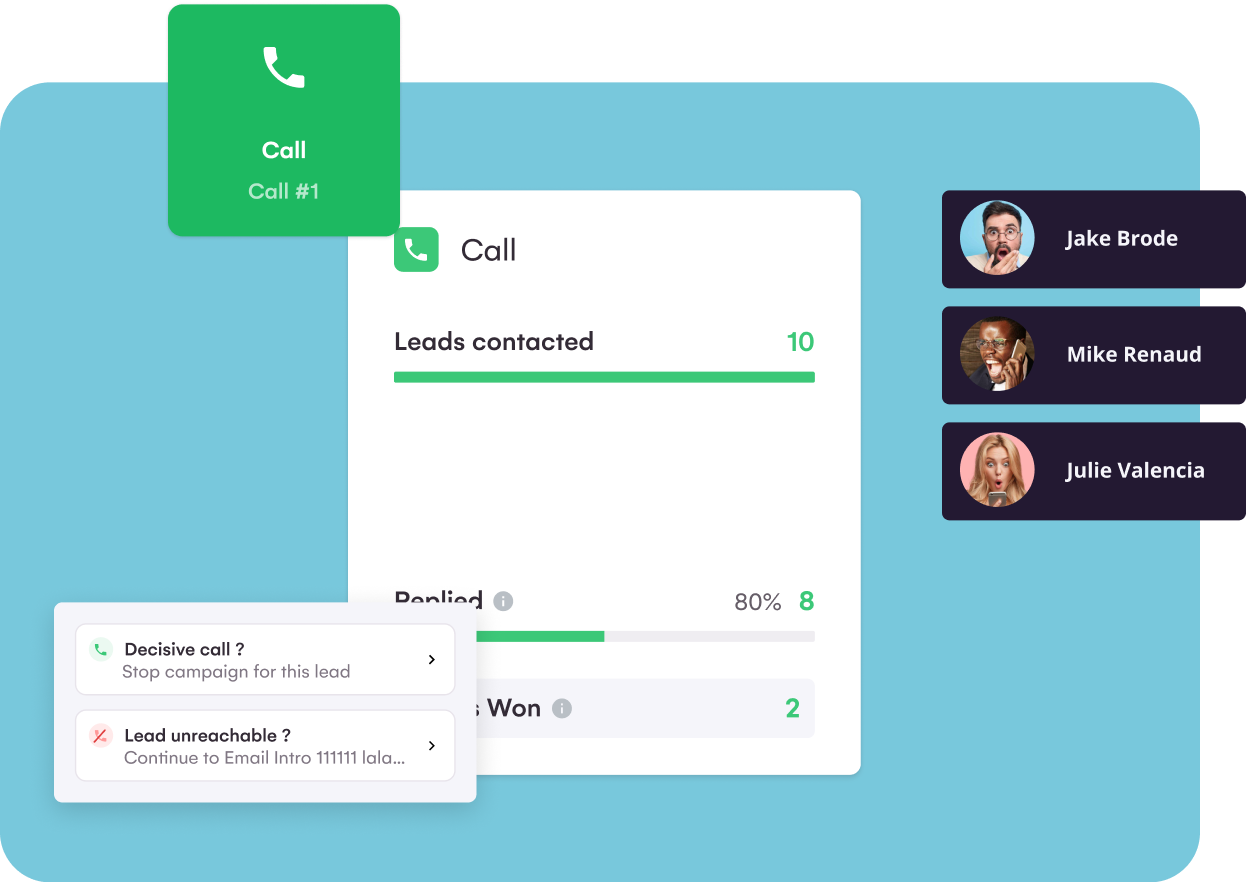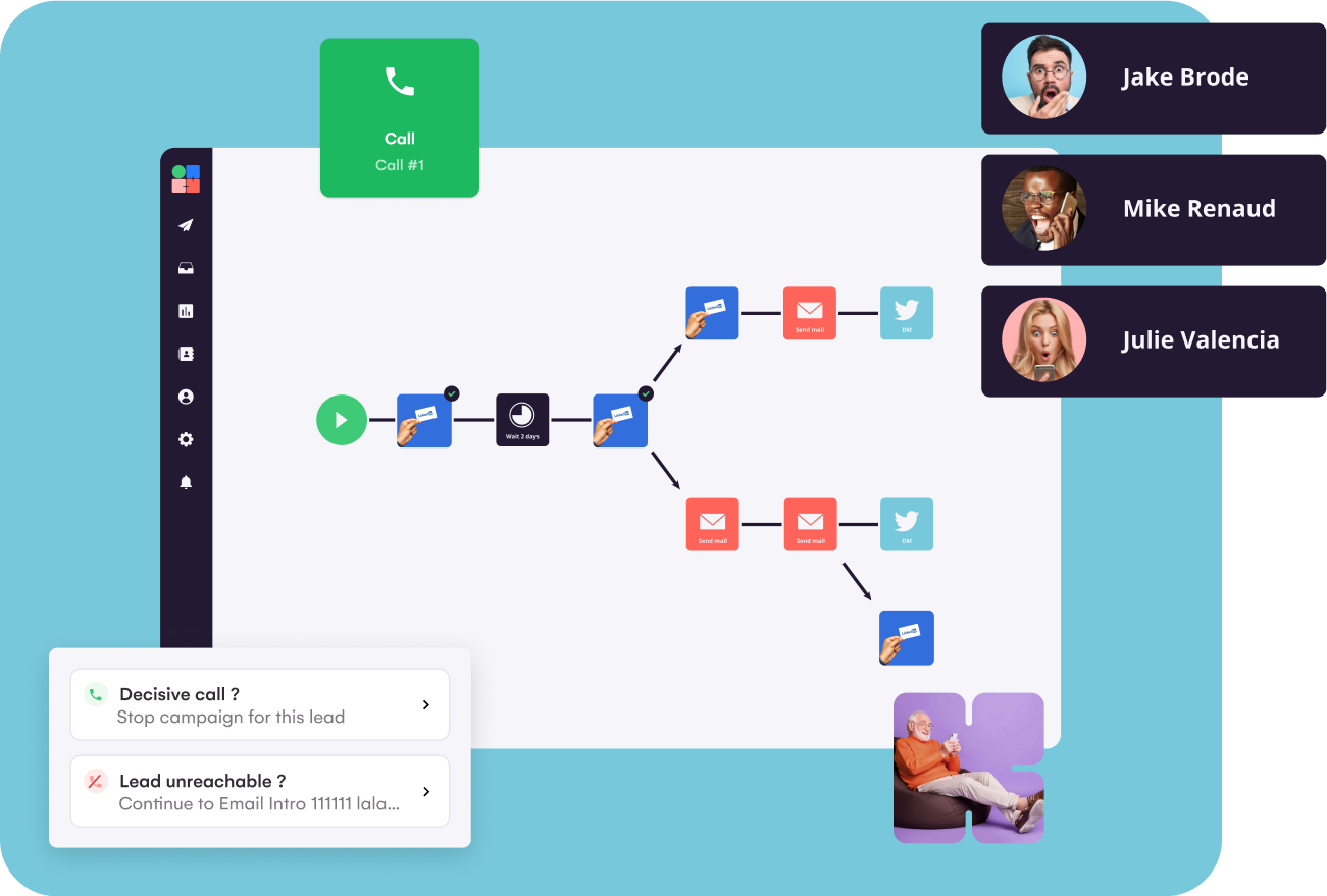 With La Growth Machine, intelligently combine emails, LinkedIn interactions and calls in your prospecting campaign!
