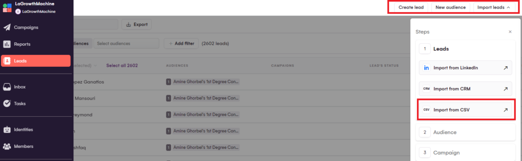 C’est très facile, il te suffit d’aller dans votre onglet « Leads » et de cliquer sur « Importer des Leads » :