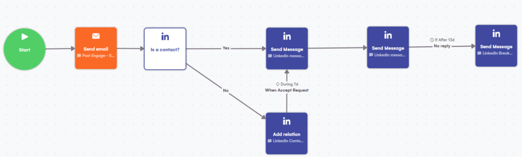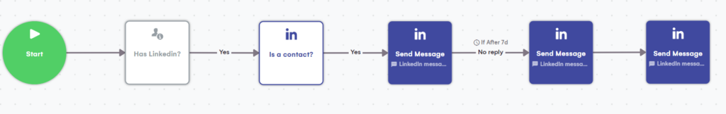 Pour ce scénario, la séquence est assez simple ; nous utilisons uniquement LinkedIn parce que :