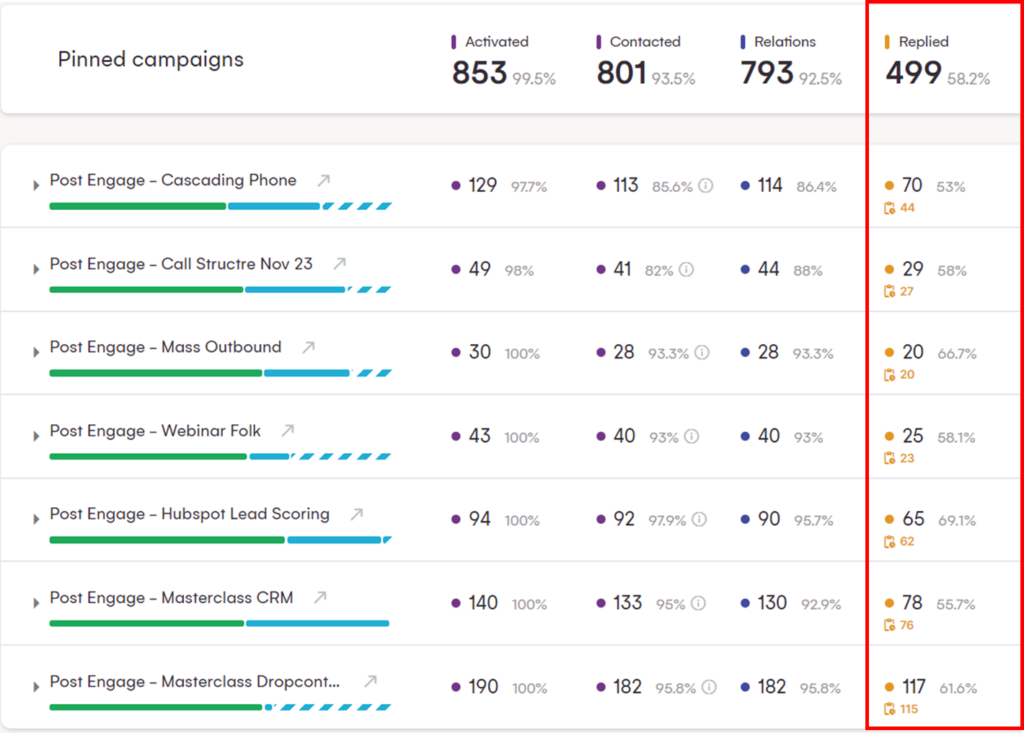 Pour les plus curieux d’entre vous, voici mes résultats pour toutes les campagnes que j’ai menées sur l’engagement LinkedIn avec des lead magnets :