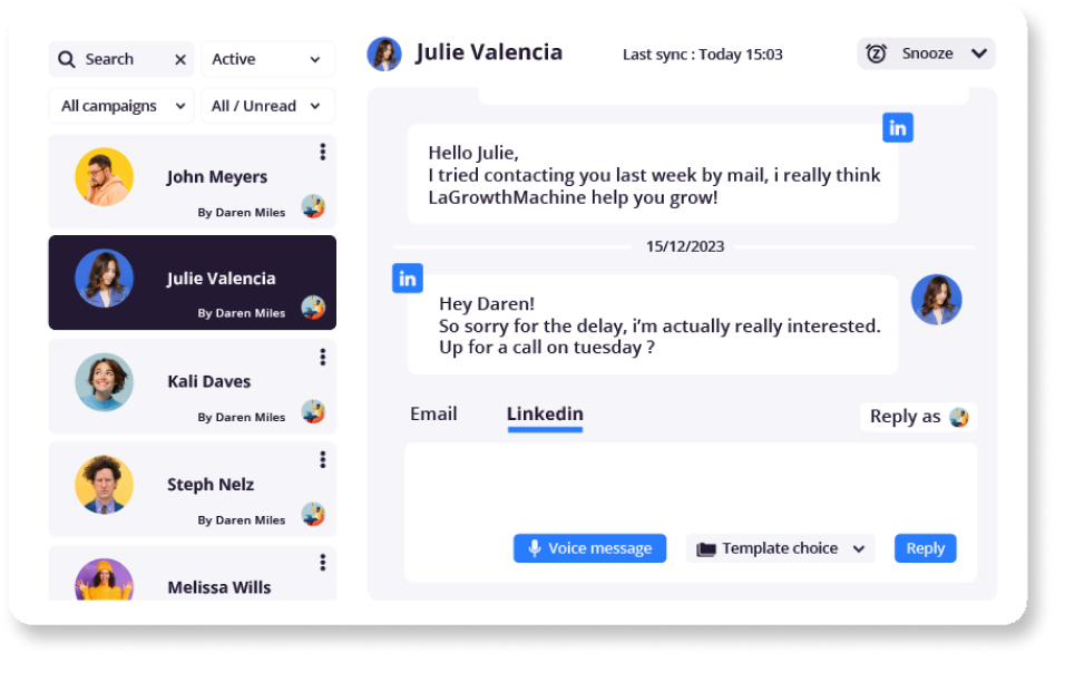 Également, notre boîte de réception multicanal est essentielle pour t’organiser et répondre à l’afflux de messages, en particulier lorsque tu traites un volume important de prospects.