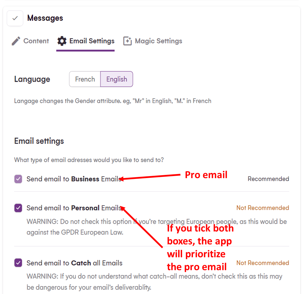 • Si LGM a enrichi l’email professionnel du lead, un email sera envoyé.