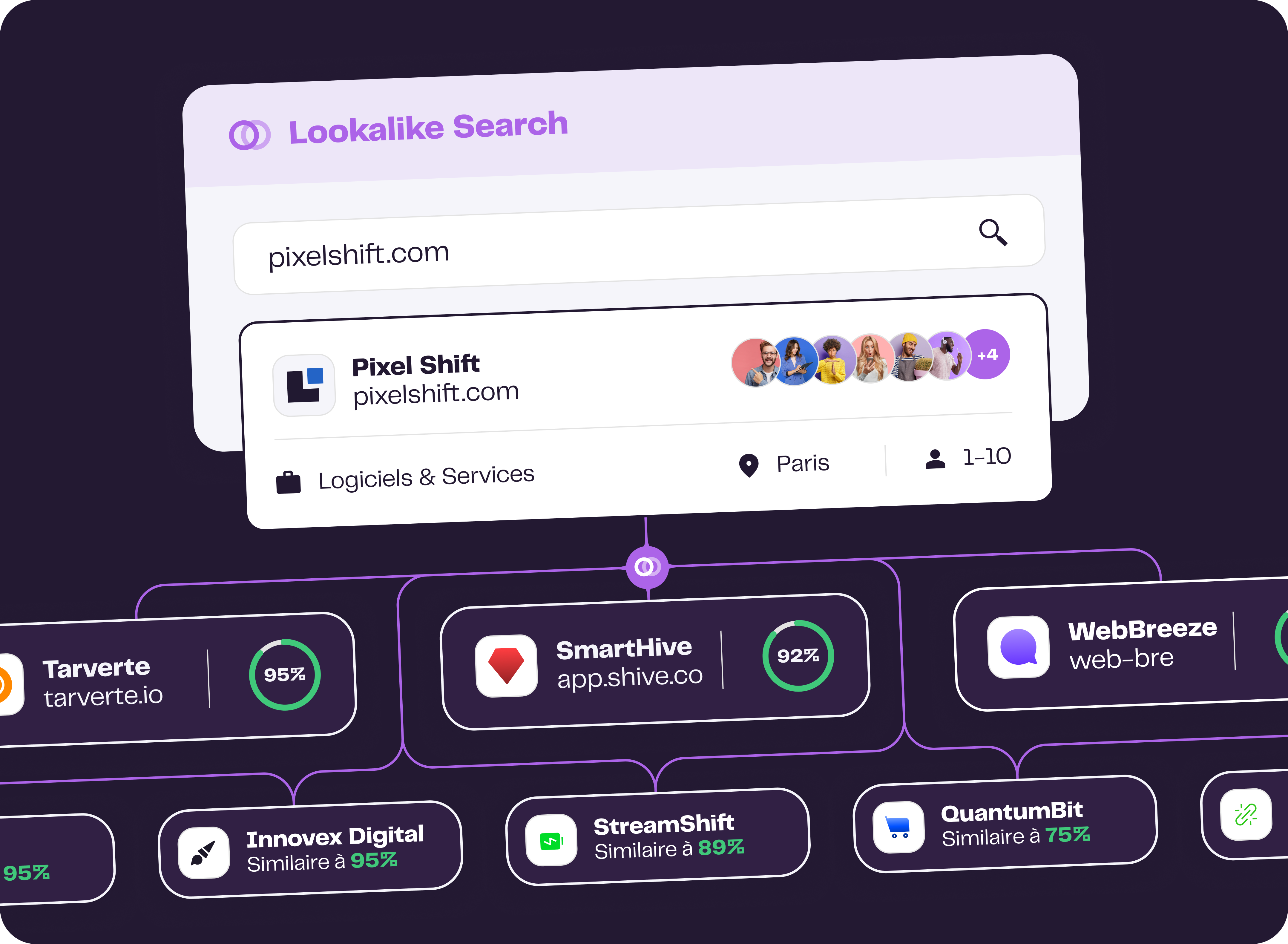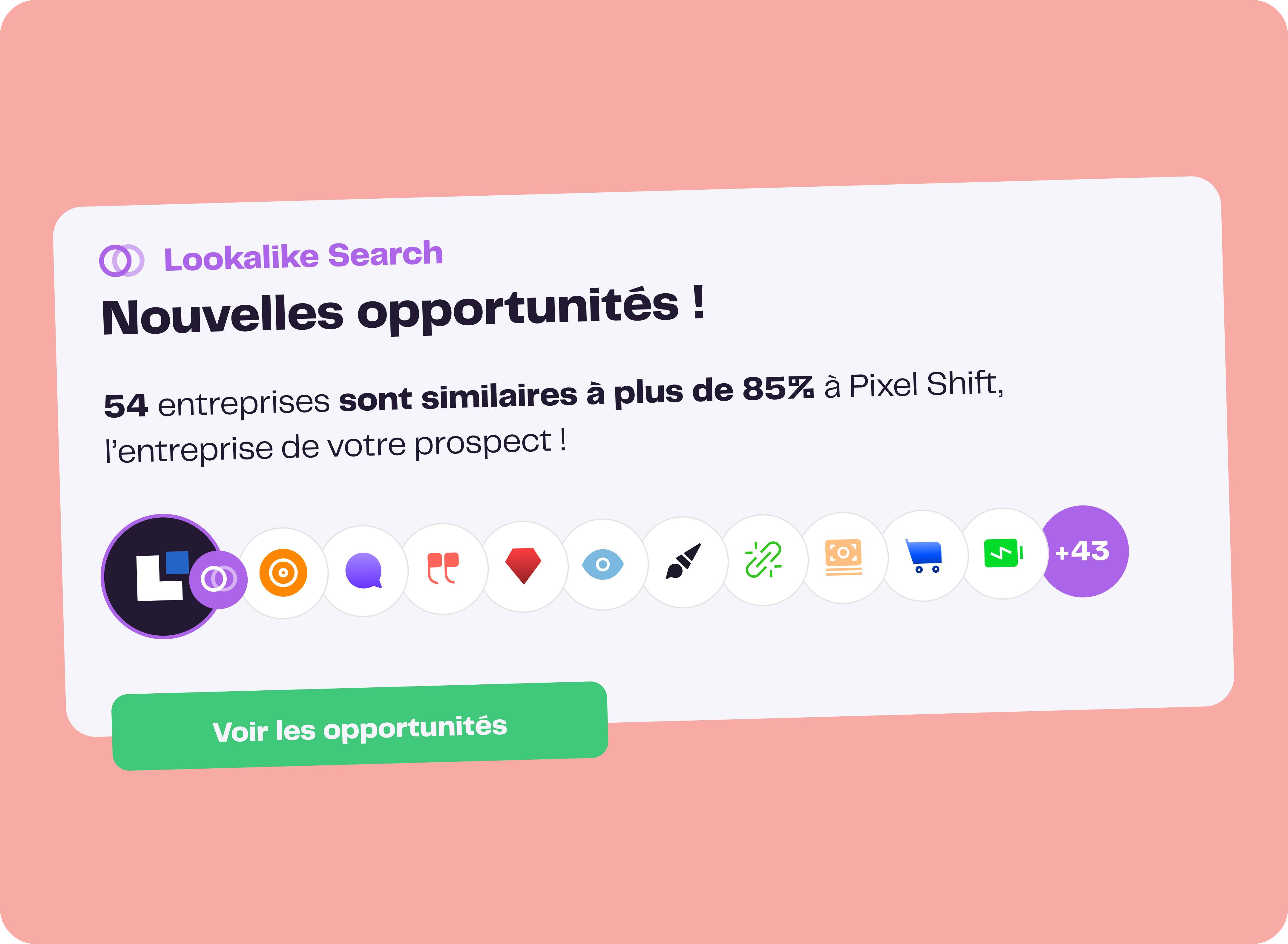 À chaque lead qualifié, obtenez instantanément une liste d’entreprises similaires prêtes à devenir vos prochains clients.