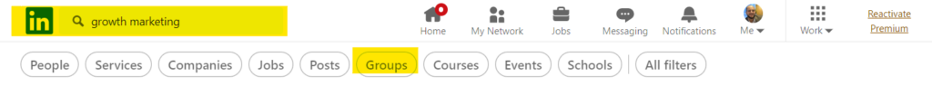 Rechercher des groupes LinkedIn directement dans la barre de recherche