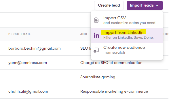En effet, notre solution peut aussi bien s’adresser aux sales qu’à des responsables marketing, des growth hackers ou même des chasseurs de tête !