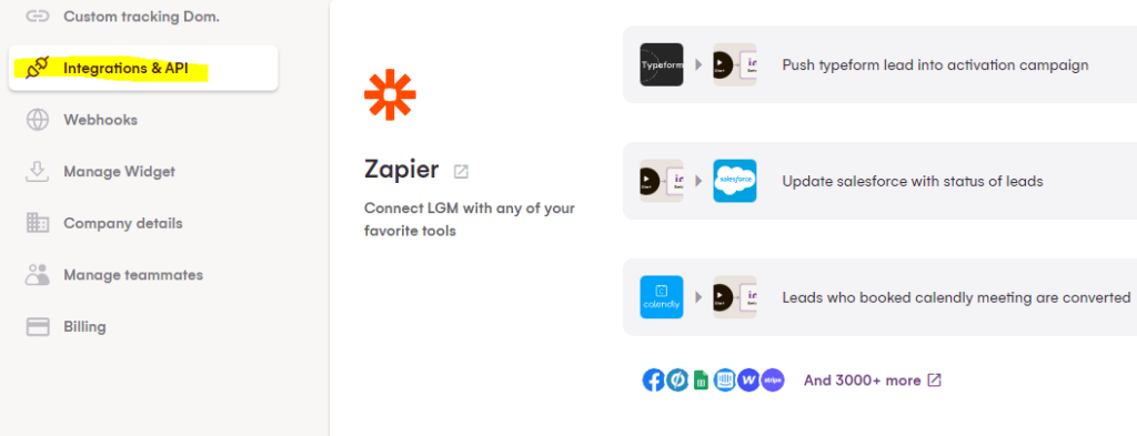 Notre outil propose des intégrations natives avec plusieurs CRM ainsi que des intégrations agiles via Zapier.