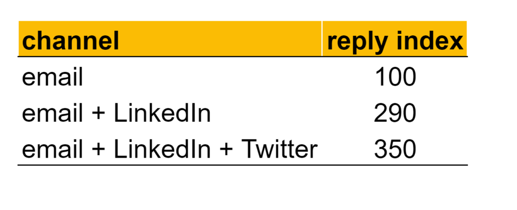 En fonction du nombre de canaux que vous engagez, vous pourrez espérer plus de réponses. Voici les statistiques que nous avons observé en interne :