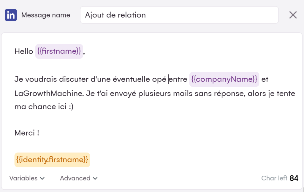 La Growth Machine dispose de nombreuses ressources et intègre l’IA pour vous aider à travailler le copywriting de vos messages. Vous pouvez lire notre tutoriel sur le sujet, ou tester notre outil gratuitement !
