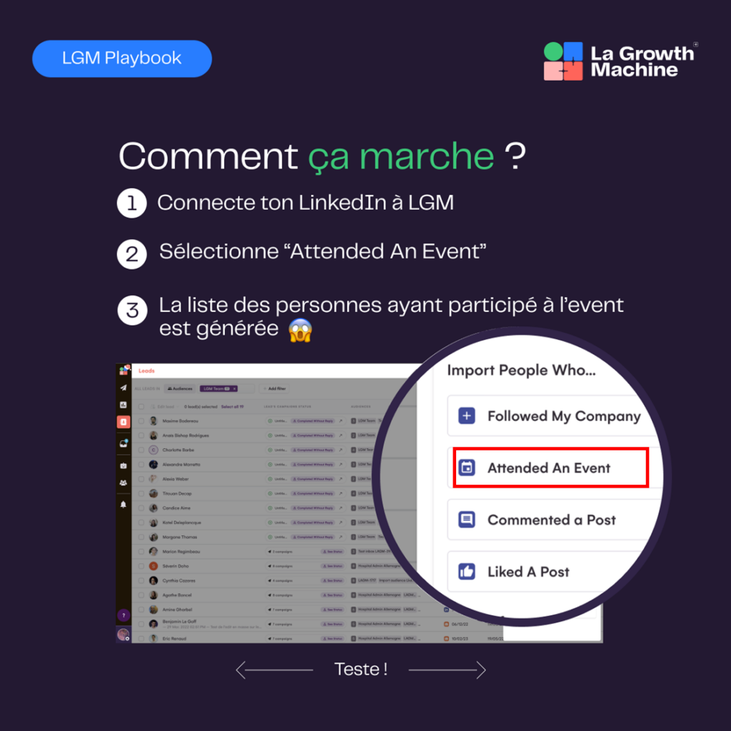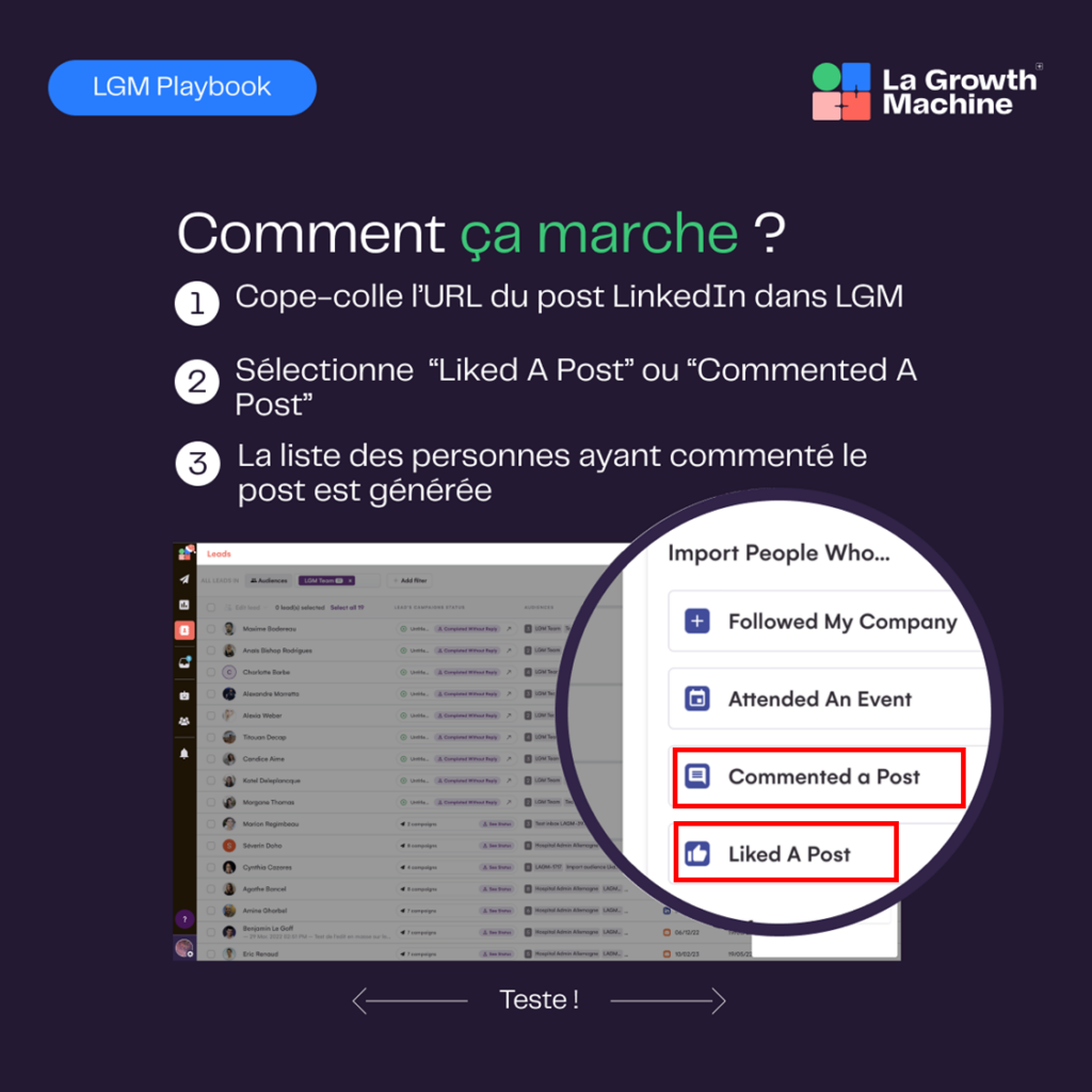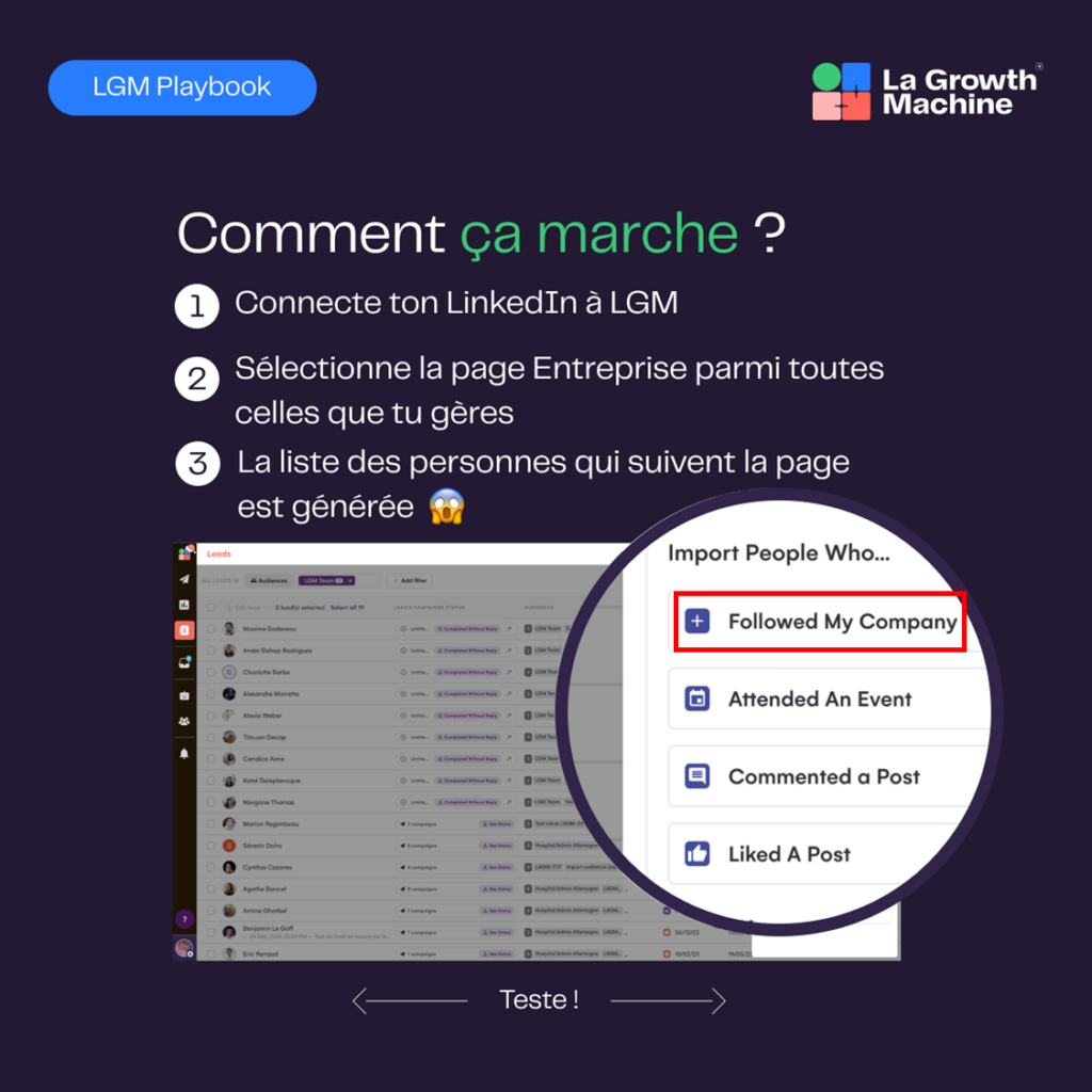 Ce que je veux dire par là est lié à la nouvelle fonctionnalité de LGM : L’importation des prospects qui ont démontré de l’intérêt pour ta marque ou certains de tes posts, directement depuis LinkedIn !