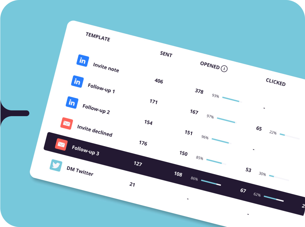 Pour chaque email envoyé, message sur LinkedIn et DM sur Twitter, accédez aux performances de chaque action pour comprendre comment réagissent vos prospects.