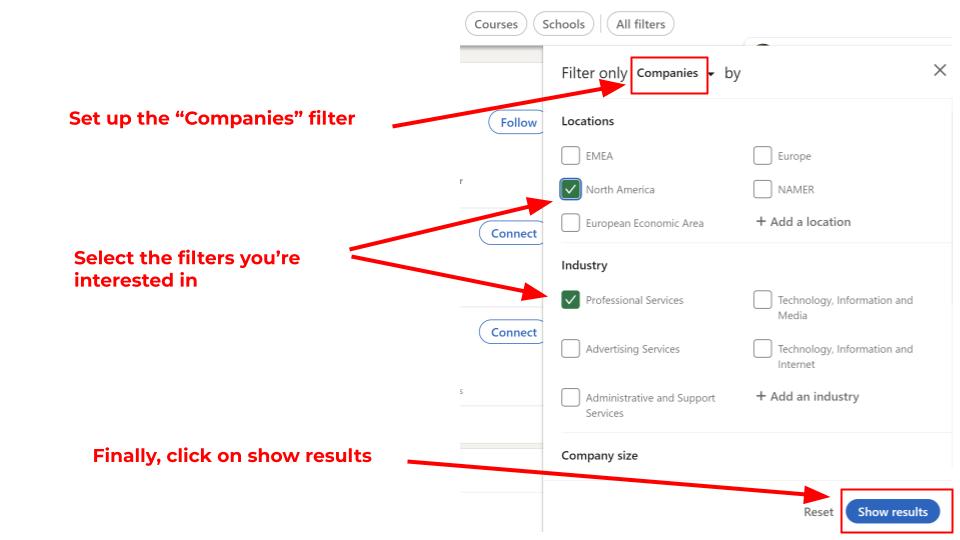 Mais pour atteindre cet objectif, vous devez être très précis lorsque vous recherchez des entreprises sur LinkedIn.