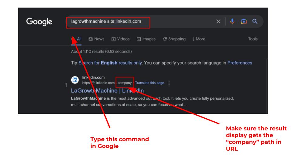 Cela signifie que vous rechercherez le nom exact de votre entreprise spécifique à partir du nom de domaine de LinkedIn, sur Google.