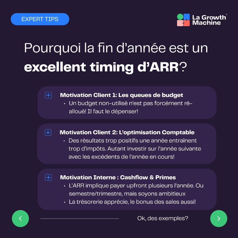 L’upsell, en particulier au mois de décembre et à cette période en général, est très efficace en raison de l’excédent budgétaire de certaines entreprises. En effet, elle doivent dépenser les dernières ressources pour pouvoir conserver le même budget l’année d’après.