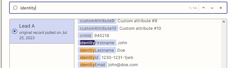 - Alors, attribuez « lgm_owner » (qui est la variable correspondante dans Pipedrive) à « identity.Firstname » = John