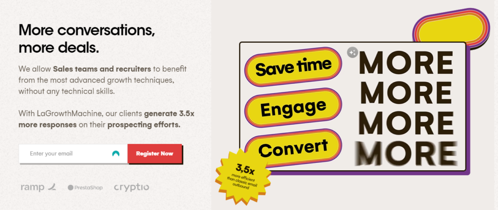 Eh bien, avec La Growth Machine, non seulement vous pouvez automatiser vos communications multicanal, mais aussi l’intégralité de votre processus de vente, de la génération de leads à la prospection par e-mail et aux mises à jour CRM.