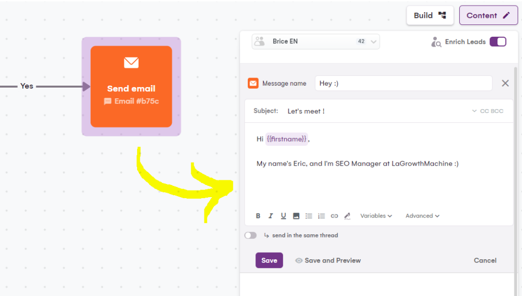Ensuite, vous pouvez mettre en place une campagne d’automatisation des ventes pour atteindre vos prospects par le biais de différents canaux tels que l’email de vente, LinkedIn, Twitter, etc…
