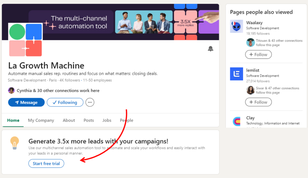 Are you looking to improve your sales department’s efficiency? LaGrowthMachine allows you to generate an average of 3.5x more leads, while saving an incredible amount of time on all your processes. By signing up today, you get a 14-day trial period at no cost to test our tool!