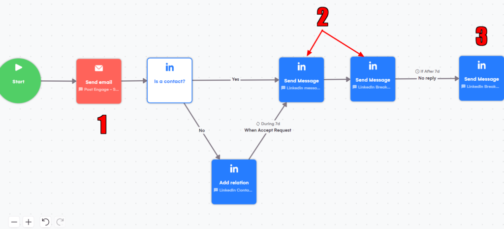Let’s take an example workflow -here’s my nurturing campaign for when someone interacts with my LinkedIn posts:
