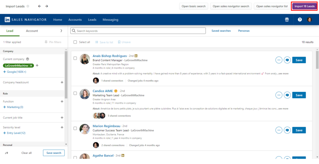 That’s why Sales Navigator is your best bet, providing advanced filters that empower you to pinpoint your ideal leads. But what if there was a way to make this process even more streamlined and efficient? Enter La Growth Machine.