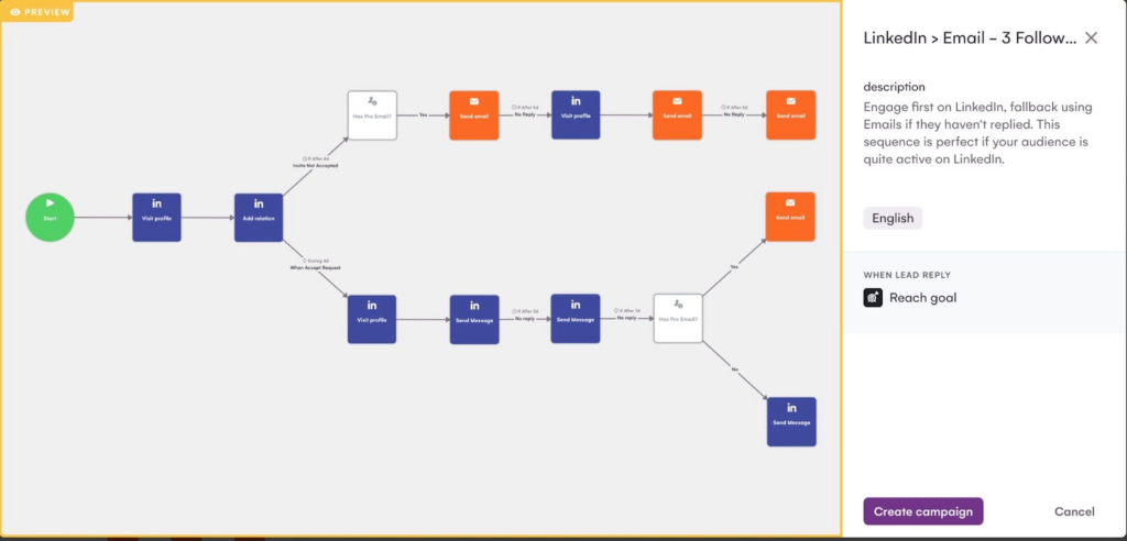 Are your prospects not very present on the networks? Then opt for an “Email Only” campaign, as you’ll be more likely to get responses. On the other hand, if your target is very active on LinkedIn, then give priority to this channel.