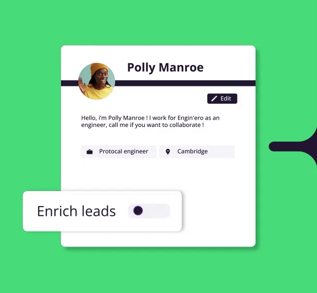 – Automate lead enrichment with one click for faster engagement.